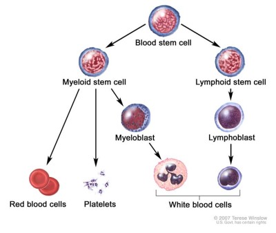 Most of the diseases for which HSCT is a standard treatment are disorders of blood cell lineage. The proliferation by which blood cells are formed from stem cells is illustrated in the side graphic (click on the image to expand it).
